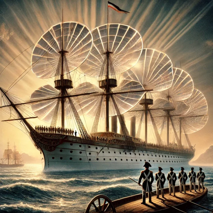The concept of a solar-powered warship in Napoleon’s time would have relied on the rudimentary principles of solar energy harnessed through steam power: